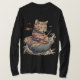 Ilustração colorida de um gato come os homens com uma tigela da onda de kanawaga.