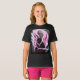Camiseta com Ametist Fairy Cat, da vida selvagem e artista fantasiosa Michaeline McDonald, de um gato preto fluffy com asas cor-de-rosa brilhantes contra um fundo estrelado preto.