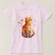T-shirt com uma ilustração adorável de aquarela. Um gato de mesa laranja parecendo amigável e feliz com corações girando em volta.