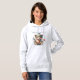 O capuz personalizado tem um tema de futebol com um toque feminino. Design moderno com flores e um urso bonito segurando uma bola de futebol. Personalize o texto no capuz com o nome ou frase desejados. Excelente para adeptos de futebol. Use a modelo para criar seu próprio capuz personalizado.
