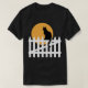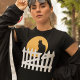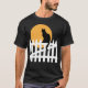 Camiseta Gato de Halloween numa cerca com lua de colheita