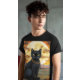 Camiseta Gato Negro debaixo de uma lua de colheita e abóbor