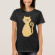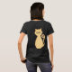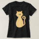 Mensagem original de gato personalizado em camiseta preta para mulheres. O design é uma silhueta de gato laranja. Ambos os textos, na frente e no verso, podem ser personalizados.