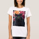 Camiseta Gato preto bonito com óculos e fones de ouvido