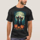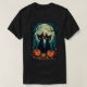 Dois adoráveis gatos pretos sentam sob uma lua de cheio brilhante cercados por abóboras assustadoras e folhas de outono. Um perfeito design de Halloween com uma vibração bonita e estranha para amantes de gatos e Halloween!
