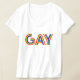 Este trabalho de arte apresenta a palavra Gay em uma fonte colorida do arco-íris.