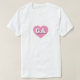 Esta camisa tem um coração cor-de-rosa vibrante contendo as letras maiúsculas, brancas, em negrito, GA, a abreviação oficial da Georgia, o estado de pêssego.