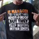 Engraçado Gerente De Ti Dizer "Gerente De Ti Tento Fazer Coisas Idiotas Provas Mas Elas Mantêm Fazer Melhor Idiotas". Agarra esta design do Gerente de TI Engraçado como presentes engraçados para uma mãe, pai ou amigo espetacular.