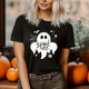 Uma camisa divertida do Dia das Bruxas, com fantasmas, teias, aranha, morcegos e estrelas. Design branco com efeito leve de sobreposição de granulado texturizado. A roupa assustadora perfeita para festas de Halloween, truques ou tratamentos, e fotos de grupo memoráveis.