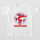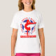 Camisa de ginástica feminina. Silhueta de ginastas estreladas, com palavras: AMOR, CHÃO, BEAM, BARES, VAULT - GINÁSTICA.