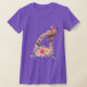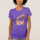 Uma t-shirt com um desenho fofo em aquarelas de uma mãe e de uma girafa bebê. A girafa-mãe está descansando a cabeça sobre a girafa do bebê, amorosa e adorável. Bonito buquê rosa, amarelo, verde, de flor de aquarela colocado debaixo deste par de queridos.