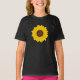 Girassol amarelo brilhante em uma camiseta preta com uma flor de aspecto chalky e o nome da garota personalizável & monograma no centro da flor - por katz_d_zynes