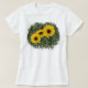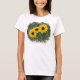 O número mágico é três! Este t-shirt sleeved curto é decorado com as três fotografias do girassol com um fundo verde mottled dos trabalhos de arte. Clique "personalizam-no" botão para adicionar o texto (como um nome, um verso ou umas citações).