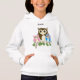Essa linda garota personalizou um capuz branco, com uma coruja, uma coruja grande e marrom e duas pequenas corujas de bebês, um azul e um rosa, sentados em um galho de árvore. O nome no capuz pode ser mudado para torná-lo verdadeiramente pessoal. Um presente adorável e ideal para combinar com presentes e papelaria. Perfeito para um amante de coruja.