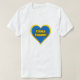 Camisa com coração nas cores da bandeira da Ucrânia, e texto dizendo "Glória à Ucrânia" em ucraniano