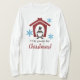 Elementos do bonito trabalho de arte gráfico de feriado mostrando um gnomo na porta de uma pequena casa estilo escandinavo com flocos de neve estilizados nesta camisa temática de feriado cada um pode ter uma cor diferente aplicada por meio da personalização para um aspecto único.