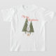 Ela vai se divertir e se divertir com esta camiseta especial de Natal Gnomo! Cena de inverno com um gnomo escandinavo de pernas finas segurando um pássaro azul giro em frente aos pinheiros. Na bonito tipografia vermelha está a citação "Feliz Natal". Encontre as camisetas correspondentes para a sua família!