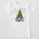 Quatro gnomos barbudos ficam em frente a uma árvore de Natal decorada na frente desta camisa fofinha. Cada um dos gnomos está bem vestido e acenando com uma saudação. Atrás da árvore está caindo fita vermelha e confete. Divertido de Natal!