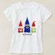 T-shirt com três gnomos de Natal fofos. Texto pronto para ser personalizado.