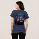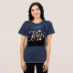 This t-shirt features a design of Jesus in starry gold script against a deep navy blue background. The text is rendered in metallic gold with a glittery, sparkly effect that gives it a luxurious, celestial appearance. The lettering has flowing curves and decorative flourishes. Around the text are several golden stars of varying sizes, each with a bright sparkly effect. The stars are above and below the text. The composition has a symmetrical layout with the text centered and the stars creating a balanced decorative pattern. The women's t-shirt features a uniquely soft tri-blend fabric, modern feminine fit, scoop neck and short sleeves. The t-shirt is a navy blue color.