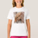 Um adorável Goldendoodle de onze semanas com olhos brilhantes curiosamente sai de uma porta em um muro de tijolos