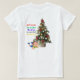 To the left of the boy and the tree is a humorous, multi-colored inscription in a playful font: "gonna go lay under the tree to remind my family". The overall scene is a funny depiction of a child impatiently waiting for Christmas presents.