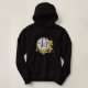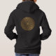 Zwarte hoodie met gouden opdruk op de voorkant met gouden bloemen en de tekst 'Knowing yourself makes you powerful'. Op de achterkant staat een gouden mandala