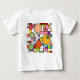 Esta camiseta bebê tem uma design moderna do século médio de uma grade com alguns retângulos coloridos e círculos em cima em cores retrorreflectoras.