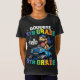 Um legal design de graduação do 4º ano de um dinossauro t rex montando um caminhão monstro que diz "Alô, 4º ano, 5" para crianças, filho, filha, irmão neto, meninos, meninas, que tem formando este ano do 4º ano ou do 1º dia da 5.