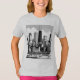 Camiseta Gráfico de Chicago Illinois apresentando a linha do horizonte da cidade. Preto e cinza ou branco. Skyline na frente da t-shirt. Na parte de trás está, "CHICAGO." Altere o texto ou deixe como está. Use a modelo para criar sua própria camiseta gráfica de Chicago.