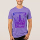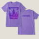 Camiseta gráfica com a linha do horizonte de Chicago Illinois. Cor roxa. O horizonte de Chicago está na frente desta camisa de mistura tripla. As costas têm, "CHICAGO." Use a modelo para alterar o texto na parte traseira ou deixe como está. Camiseta excelente para homens, mulheres e crianças. Crie sua camiseta personalizada.