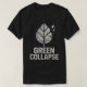 Broken leaf shapes in a raw, urban look illustrate the theme of ecological crisis. The design is direct, bold, and perfectly suited for black shirts.