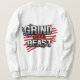 Style: Aggressive athletic typography, ripped metal texture, subtle USA flag behind letters.