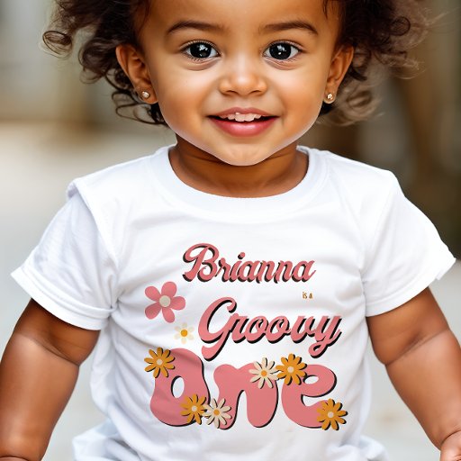 Groovy one retro daisy party t-shirt de aniversário t-shirt fotografar t-shirt, retrô poeirento cor-de-rosa, ranhura de uma primeira foto de aniversário