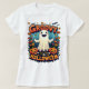 A design gráfica moderna e fofinha "Groovy Halloween" do Halloween apresenta texto em letras laranja e brancas com um sotaque fantasma giro. Disponível em vários estilos e tamanhos para toda a família.