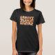 O design da camiseta apresenta a frase "Groovy Mama" em uma fonte ousada e retrorreflectora, com cores em tons quentes de laranja, amarelo e rosa para um visual antigo. Ao redor do texto estão flores e smileys face divertidos, aprimorando a vibração inspirada nos anos 70. fazer-a uma escolha divertida e na moda para mães que adoram um toque de talento retrô.