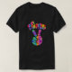 A design da camiseta retrô dos anos 70 apresenta um sinal de paz de corante de gravata ranhosa com texto curvo.