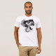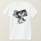 T-shirt branca e personalizada com uma ilustração legal do vetor do abstrato preto grunge de uma fita áudio destruída com um crânio e círculos retrorreflectores preto e branco em segundo plano @ www.webdesignhot.com - uma árvore de tendências e anca perfeita para rapazes adolescentes. Disponível para homens e mulheres - basta escolher o estilo e o tamanho do seu item de roupa.