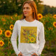Fique confortável e na moda com a camiseta de manga longa desta mulher, com um girassol vibrante e um design de resmungão. Perfeito para jogar ou vestir solo, esta camisa adiciona talento artístico e encanto rústico ao seu guarda-roupa. Ideal para dias mais frios e olhares criativos e inspirados na natureza.