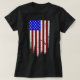 Esta imagem mostra uma bandeira americana de orientação vertical com uma textura muito angustiada e amarga. O cantão azul com estrelas brancas é posicionado na parte superior esquerda, enquanto as listras vermelha e branca se estendem para baixo. As cores parecem esmaecidas e as bordas são esmagadas e irregulares, com manchas brancas e listras dando a ela uma estética vestida, meteorológica e vintage.