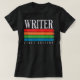 Diversão de design para escritores. "Escritor" e "primeira edição" em uma frente de máquina de escrever e linhas coloridas simples em cores retrorreflectoras.