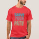 A imagem mostra um design de camiseta de várias cores com o texto "Carve Your Path" em diversas cores. O texto é organizado de uma forma dinâmica e atraente que sugere a ideia de entalhar o próprio caminho na vida.
