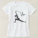 Estampa em preto e branco, com traços finos, rabiscos leves e estilizados, representando a pose Guerreiro (Virabhadrasana) de forma minimalista e elegante.