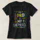 Uma representação serena de um pastor que conduz um bando de ovelhas através de uma pasto verde e exuberante. O pastor é acompanhado de uma luz suave brilhando de cima, simbolizando orientação e proteção. LORD É MEU Pastor
