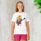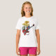Uma guitarra elétrica em vermelho com um tambor atrás dela. Esta design parece muito eficaz nesta Camiseta de Meninas