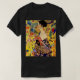Camiseta com pintura de óleo de Gustav Klimt Lady com ventilador (1918). Uma mulher vestindo um quimono azul segura um fã vermelho contra um fundo amarelo colorido de flores e pavões. Um presente de excelente para fãs de arte japonesa e europeia.
