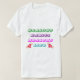 O slogan escrito numa fonte divertida e desenhada à mão. Cada palavra pode ter uma cor diferente ou uma ligeira inclinação. Use uma variedade de cores brilhantes e alegres para o texto e a camisa. Adicione uma colagem de pequenas ilustrações representando hábitos saudáveis, como o coração com a campainha