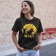 Diseño para Halloween con imagen de un gato negro con un cuchillo bajo la luna llena y la palabra "what? , Diseño divertido y sarcastico ideal para las fiestas de halloween. No dude y adquiera la suya ahora.