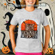 Este desenho gráfico, foi digitalizado, na edição de Foto, para criar esta vibrante lua amarela alaranjada, com morcegos voando, em uma cinza pálida, colorida, no céu e exibido, com uma frase gótica familiar, "Feliz Dia das Bruxas".