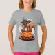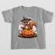 An adorable Halloween squirrel sits on a Jack-o-lantern